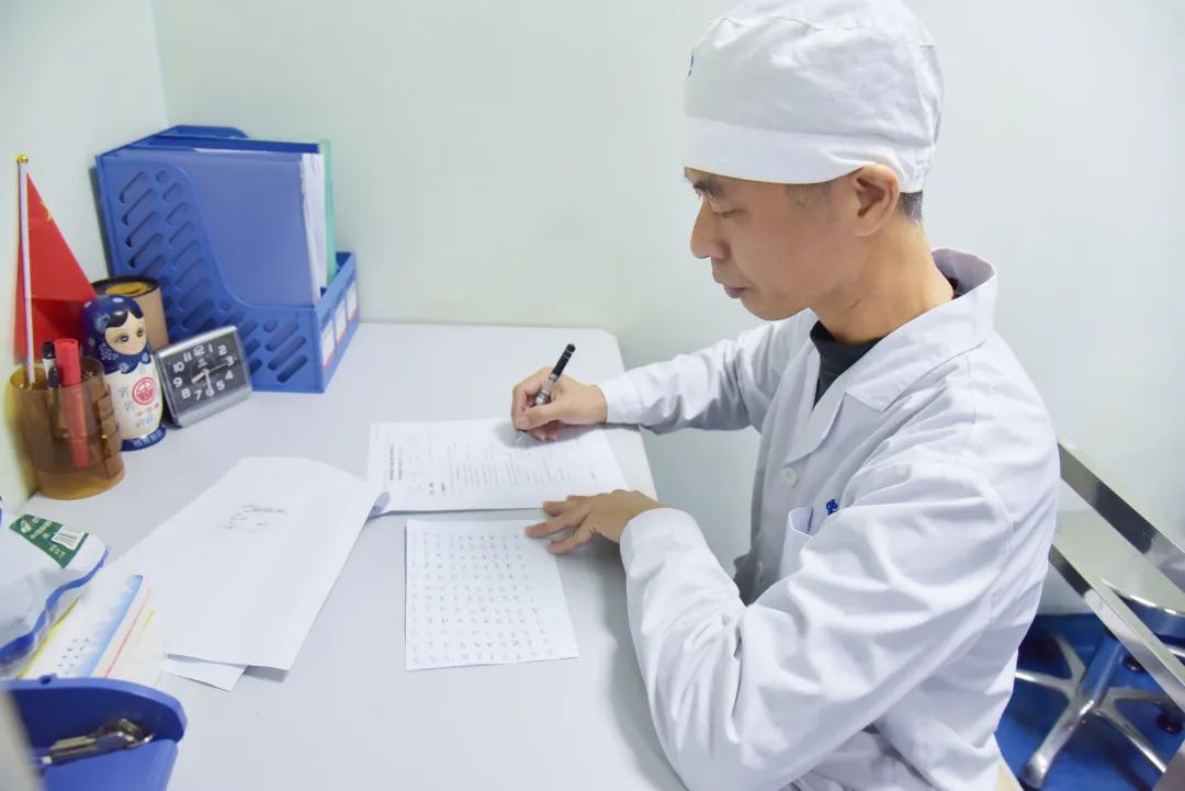 从细节看人品,这位被同事们尊称“阿国师傅”的他,办公桌面上各种书籍材料、业务规程、记录文件永远都是堆叠有序;中检专用操作间里,各种检测试剂、设备仪器严格按定置管理,摆放得整整齐齐;他书写的记录文件,字迹工整,方正有力,点横撇捺,一丝不苟,岸然如一幅硬笔书法。