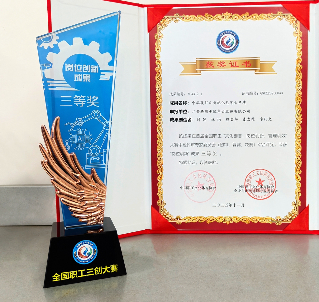 广西梧州制药(集团)股份有限公司中华跌打丸智能化包装生产线荣获“岗位创新“成果 三等奖