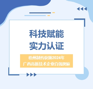 科技赋能实力认证梧州制药获颁2024年广西高新技术企业百强牌匾近日,标志着“2024年广西高新技术企业百强”荣誉的官方牌匾,正式送达广西梧州制药(集团)股份有限公司(以下简称:梧州制药)。这不仅为此次评选画上圆
